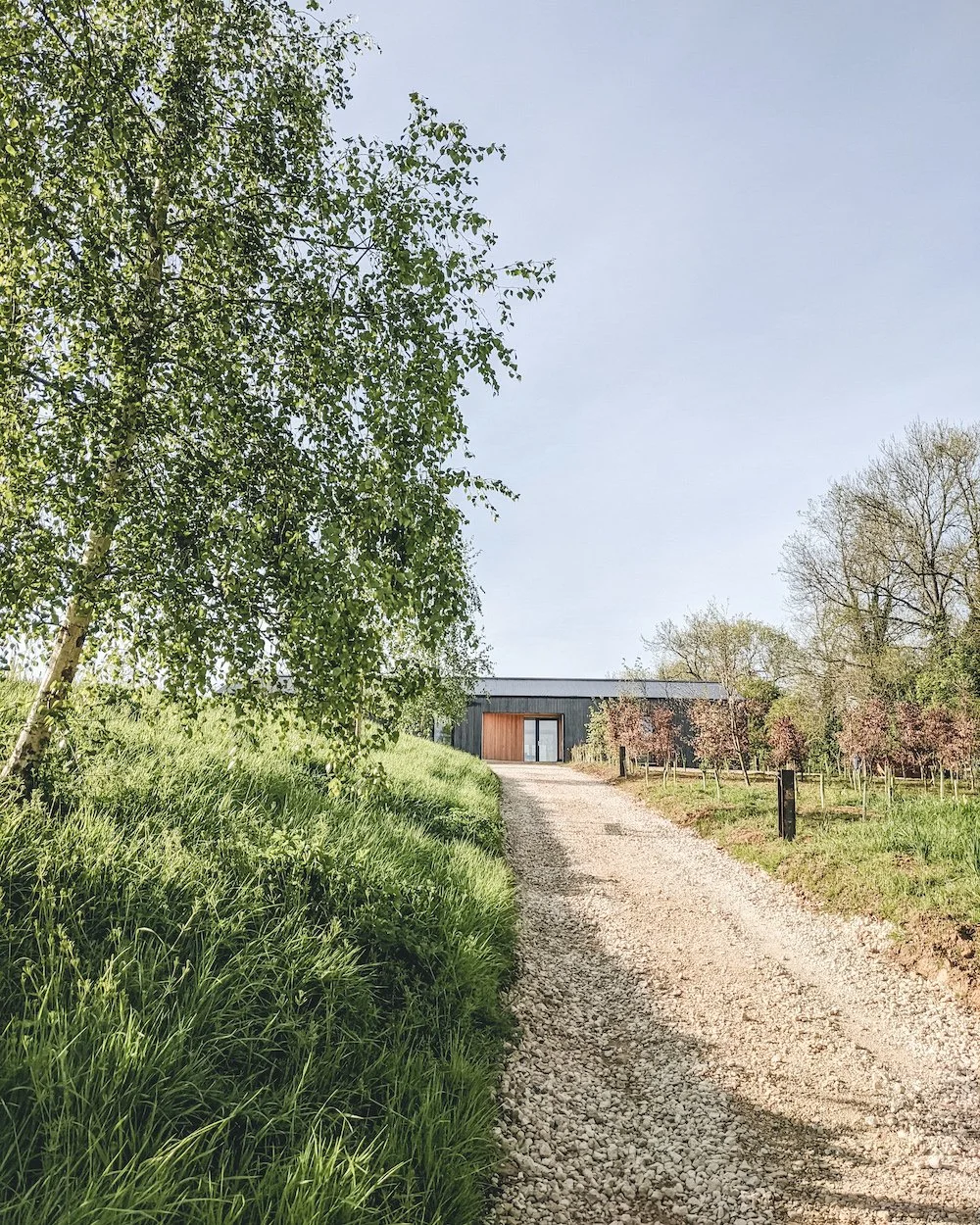 Charlie Luxton Design’s sustainability ethos extends outside the studio. The office is set within three acres of rolling north Oxfordshire countryside and an integral part of the project has been to re-wild the plot and create a bio-diverse environment. The team have already begun planting native trees and aim to have 5000m2 of woodland alongside wildflower meadows.