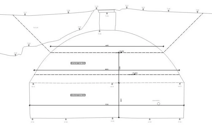 Cross section of the buried tank