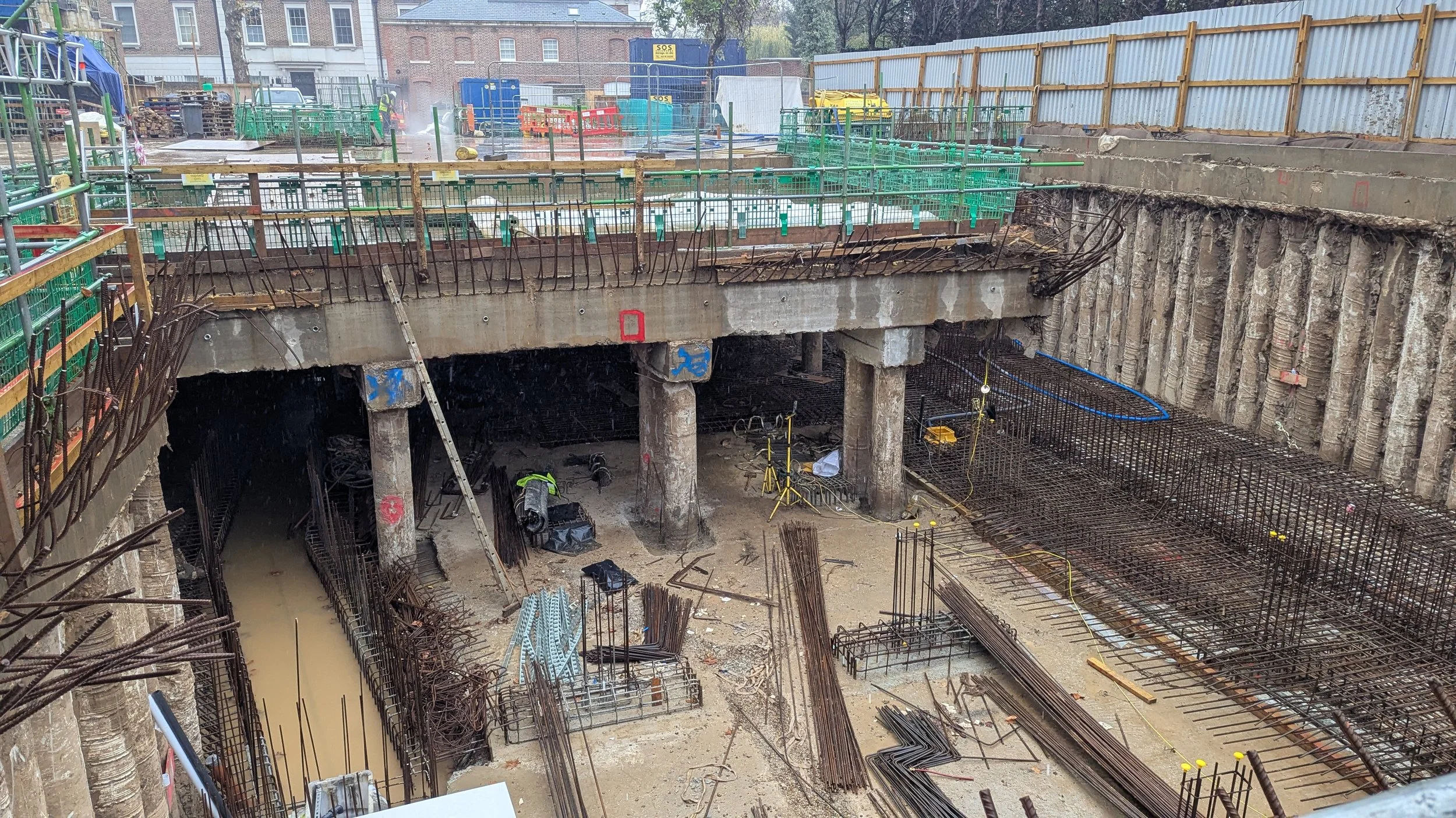 To accelerate the construction program, the basement works were carried out in two phases. The Phase 1 basement structure was required to support significant construction traffic, material storage, and excavation loads. The phase 2 basement was then constructed using a top-down methodology, allowing excavation and basement works to progress concurrently with the erection of the main house superstructure.